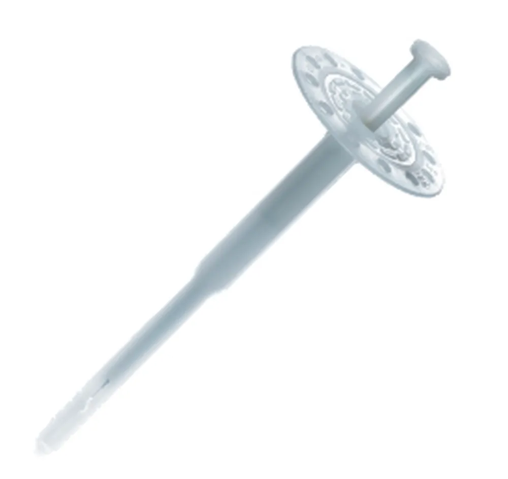 Talířová hmoždinka s kombinovaným zatloukacím trnem.