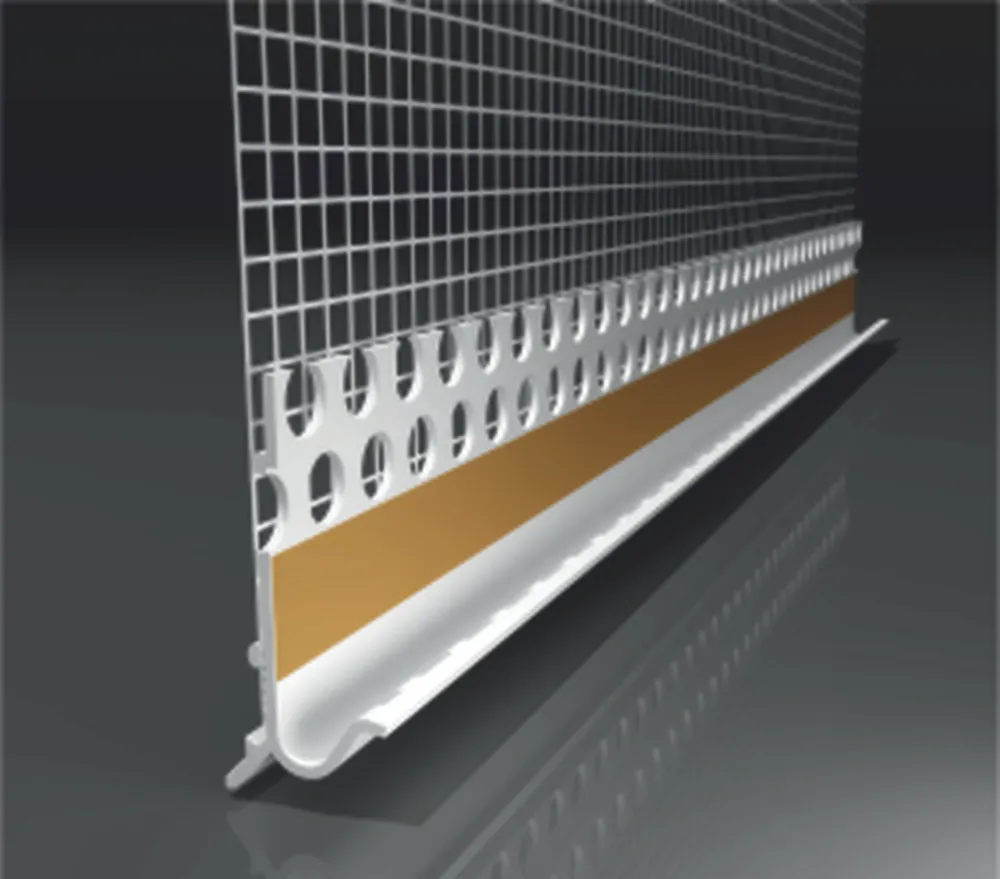 Okapnice se sklovláknitou výztužnou tkaninou pro zajištění dilatujícího spoje mezi zakládacím profilem a omítkou v kontakntím zateplovacím systému.