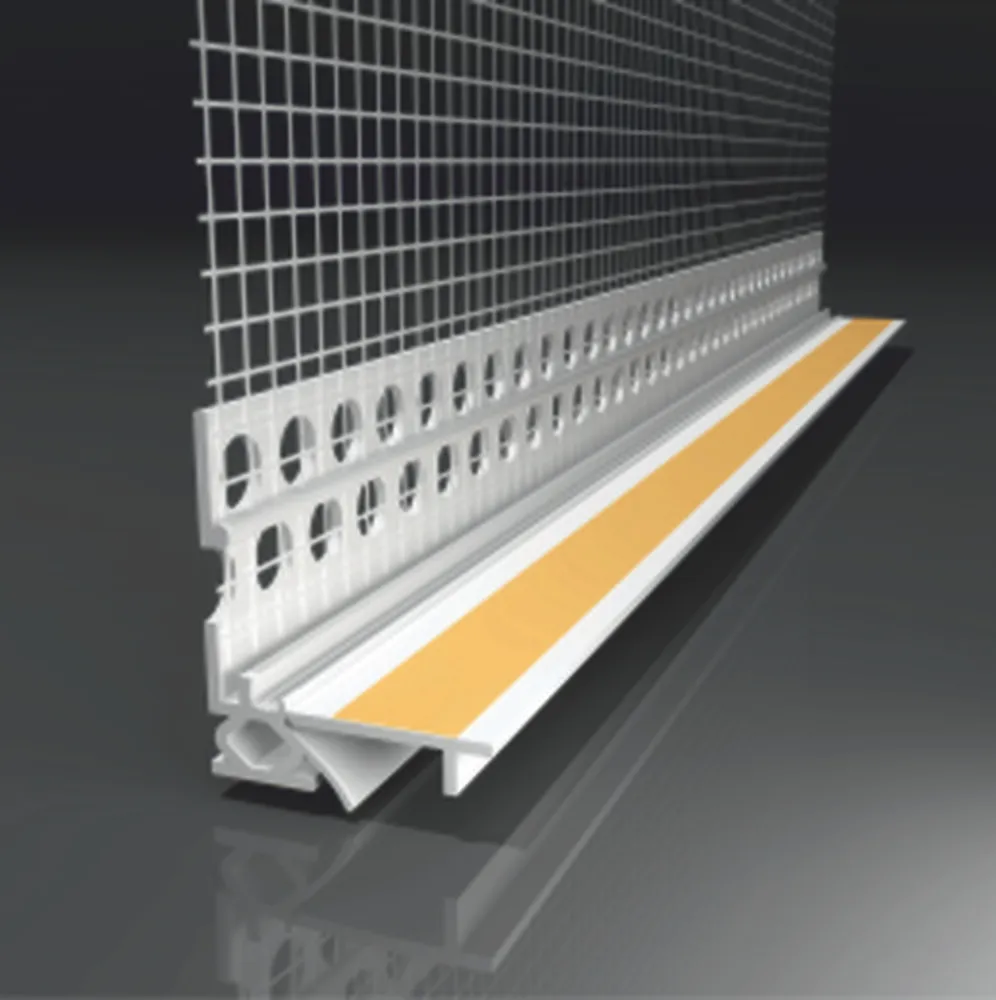 LS2-FLEX lišta okenní napojovací 2D s krycí lamelou a sklovláknitou výztužnou tkaninou pro spojení dilatující ve 2 směrech mezi rámem okna nebo dveří a omítkou v kontaktním zateplovacím systému – ETICS.