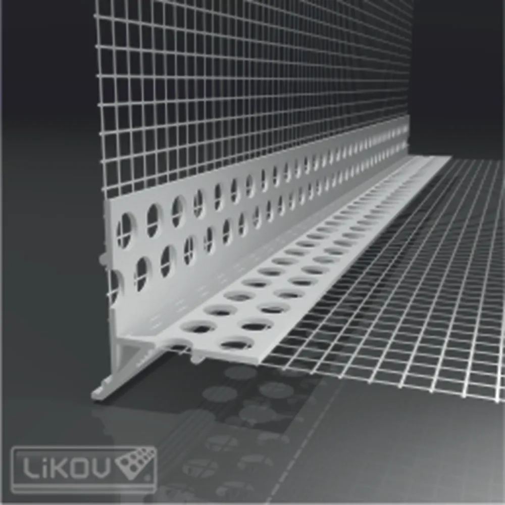 LTDU lišta nadpražní s nepřiznanou okapnicí (podomítkovou) a sklovláknitou výztužnou tkaninou pro začištění omítky a zajištění odvodu vody u nadpraží stavebních otvorů v kontaktním zateplovacím systému – ETICS   Lištu je možné použít i pro ochranu rohů a odvod vody u balkonů nebo teras. Může nahradit i LO zakládací lištu na spodní hraně systému, pokud zakládací lišta není v systému na založení izolantu použita (u nízkoenergetických nebo pasivních domů)