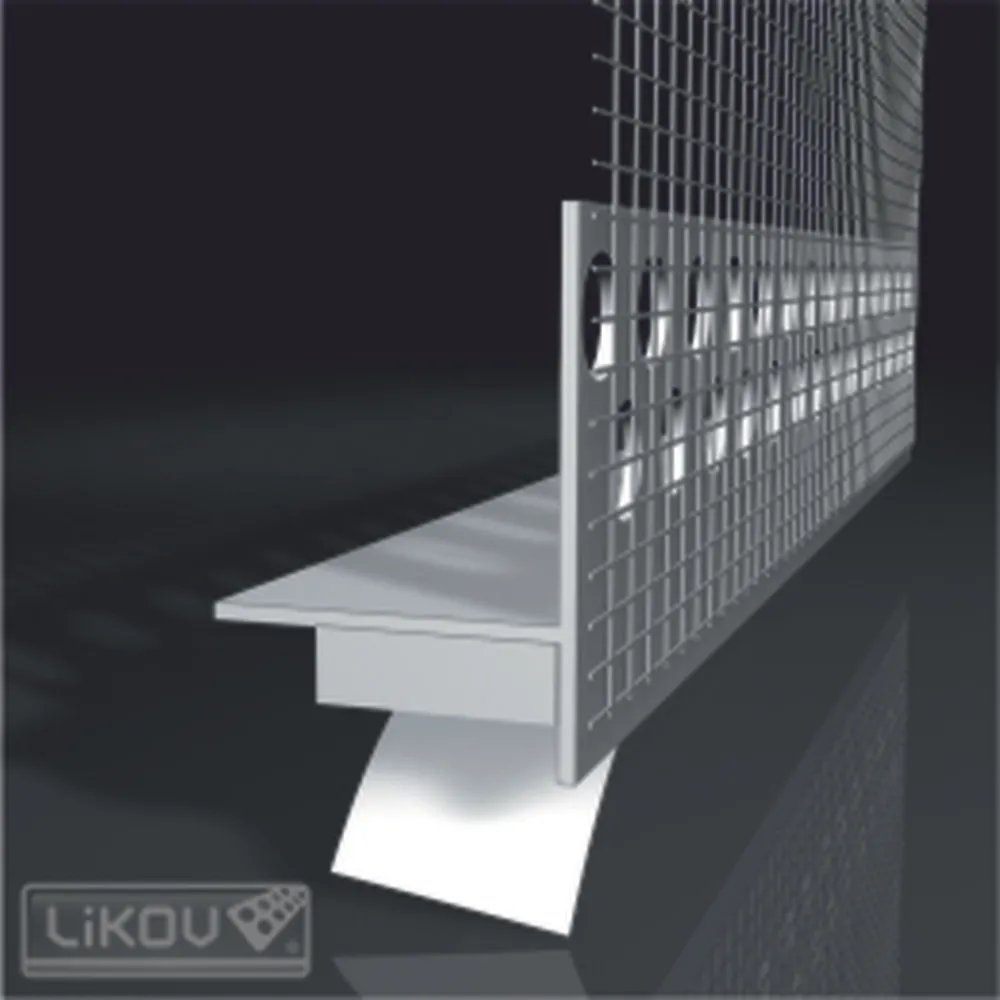LX-SPP lišta parapetní s nepřiznanou podomítkovou okapnicí, sklovláknitou výztužnou tkaninou a pěnovou páskou pro zajištění dilatujícího napojení omítky na koncovku parapetu a odvod vody z ostění v kontaktním zateplovacím systému – ETICS.