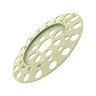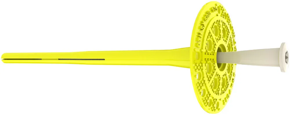 Talířová hmoždinka s ocelovým šroubovitým trnem.