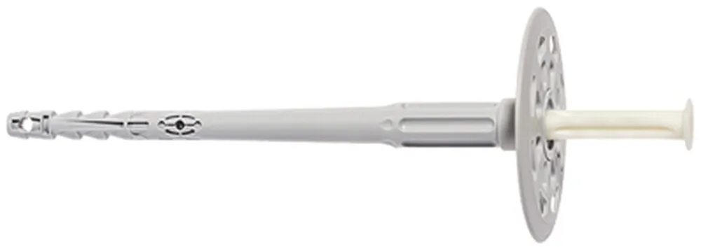 Talířová hmoždinka s plastovým zatloukacím trnem.